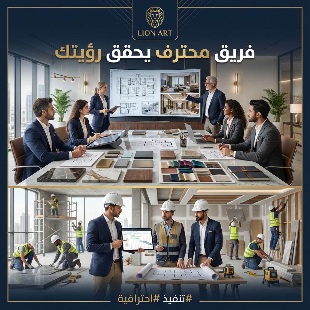 As part of Hany El Awady Group, Lion Art specializes in shaping distinctive interiors and exteriors, combining creative design, technical skill, and flawless finishing to bring every project to life.